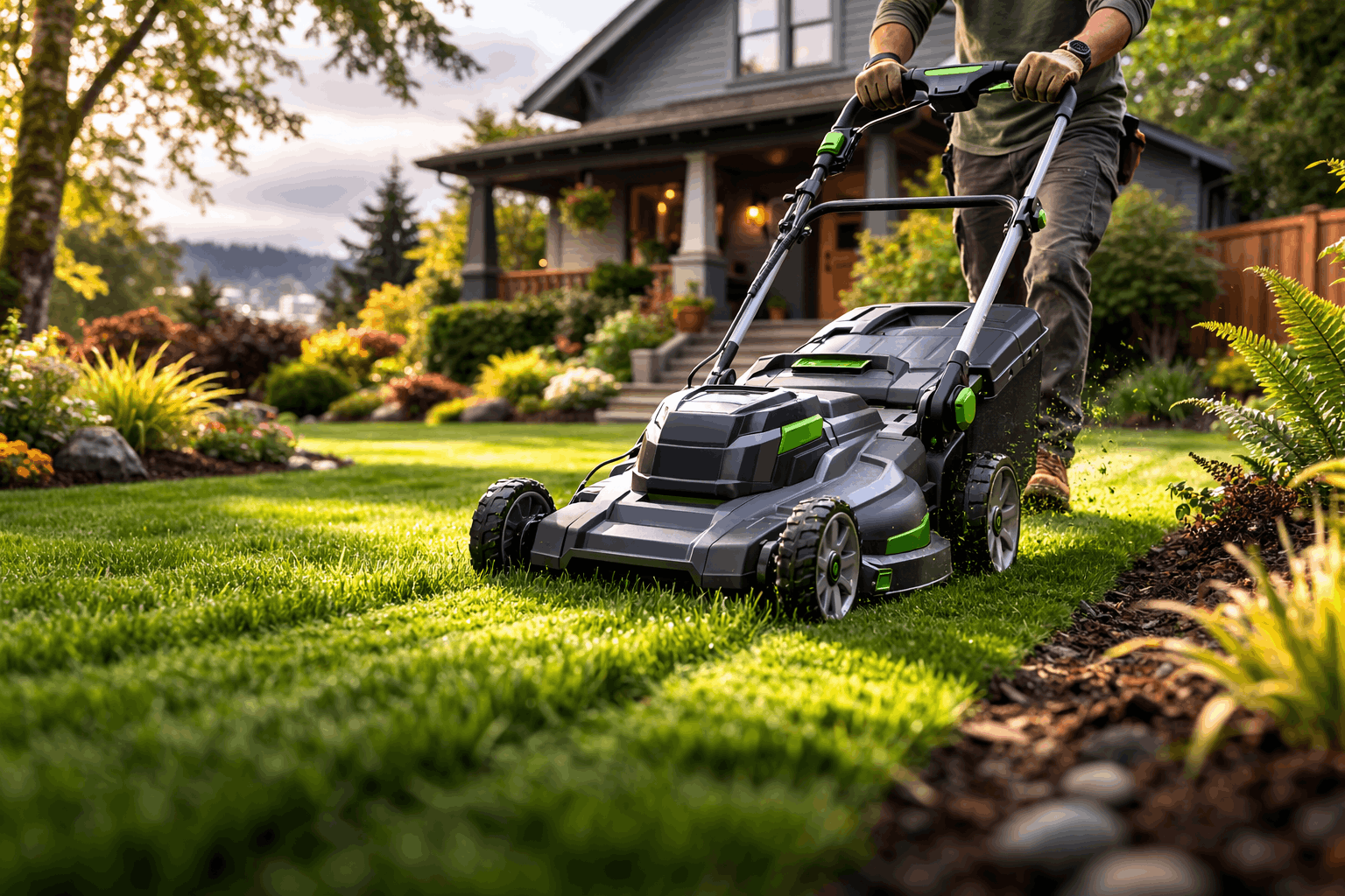We use all-electric mowers and battery-powered blowers to reduce noise and eliminate gas emissions.